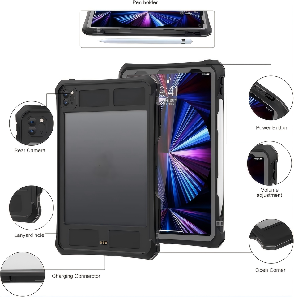 Custodia Robusta Antiurto ShellBox per iPad Pro 11 Pollici 2020/2021/2022, Protezione Completa con Supporto e Cinghia
