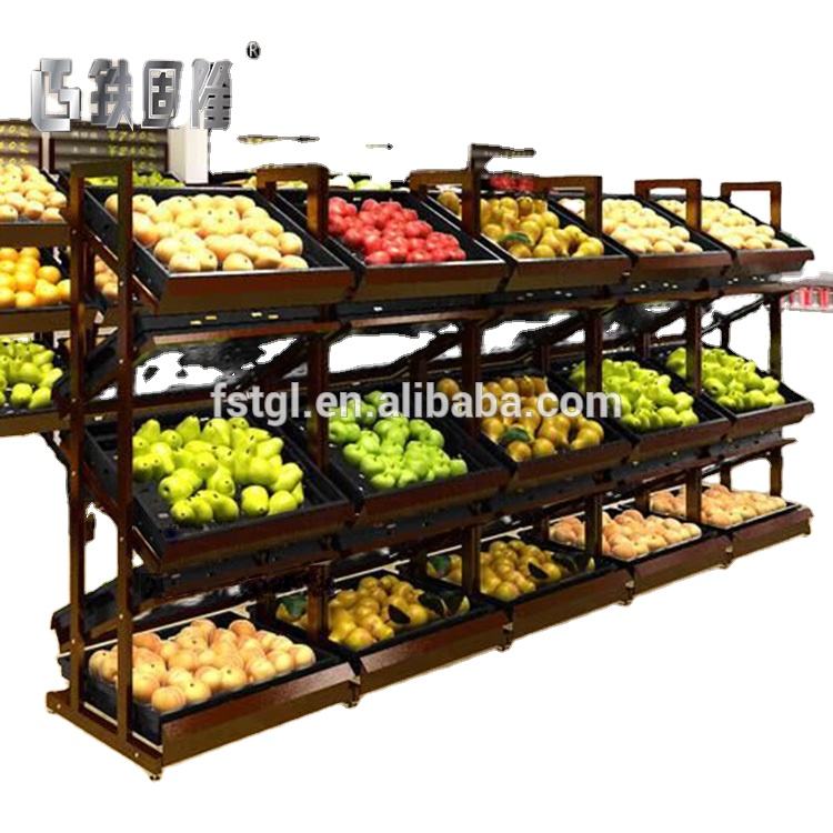 Scaffali per Supermercato, Espositore per Frutta e Verdura, Scaffale in Legno per Esposizione di Frutta e Verdura, Robusto e Resistente