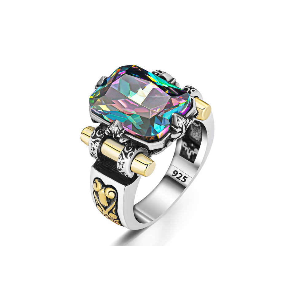 Anello da uomo in argento modello Shield con pietra topazio mistico