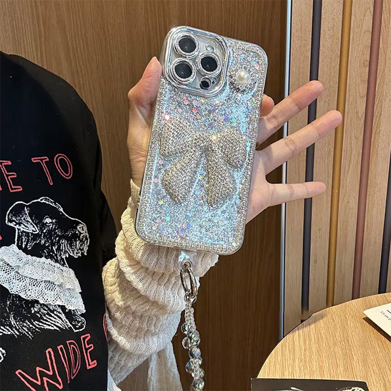 Shine Diamond Bow Glitter Rhinestone Bling Plating Luxury Women Girl Phone Case for iPhone 16 15 14 13 12 11 Protective Cover