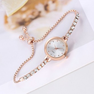 Shinestone Women's White Quartz Wristwatch with Slide Design