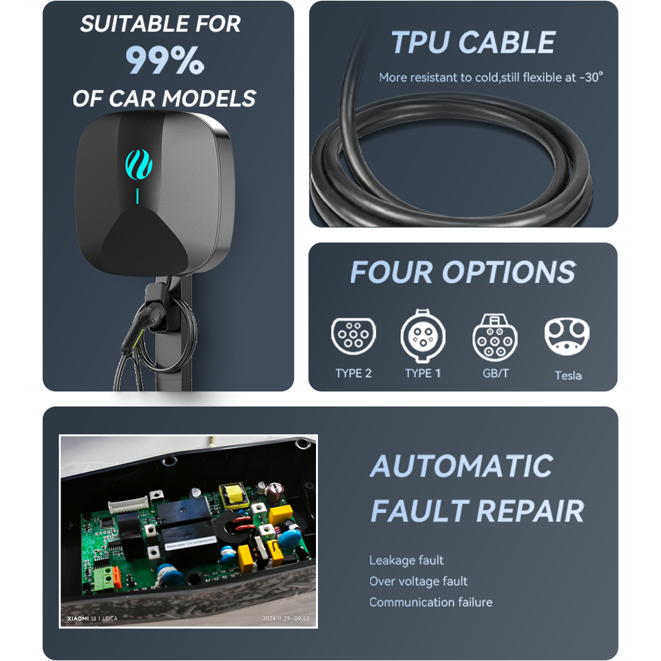 Shineyou Wallbox 3.5KW/7KW/9.6KW/11kw/22kW Future Proof Wall Charger for Tesla J1772 Type2 Gb T Ip67 Bluetooth App Control