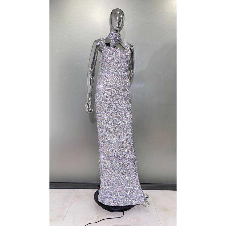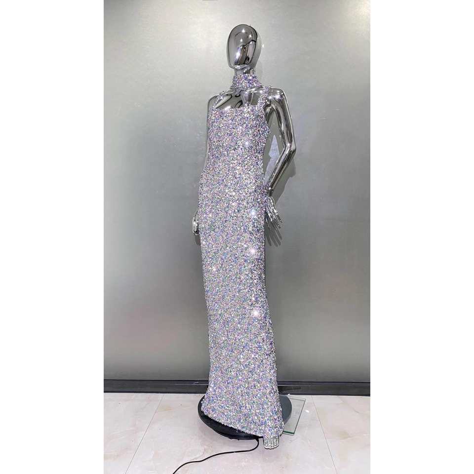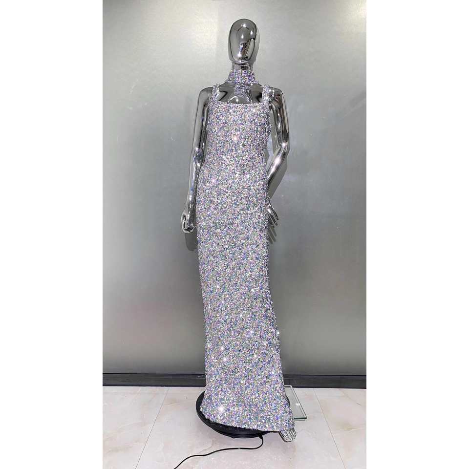 Shining Sequins Sleeveless Women's Square Collar Bodycon Long Dress New Arrival Fashionable Evening Party Outfit