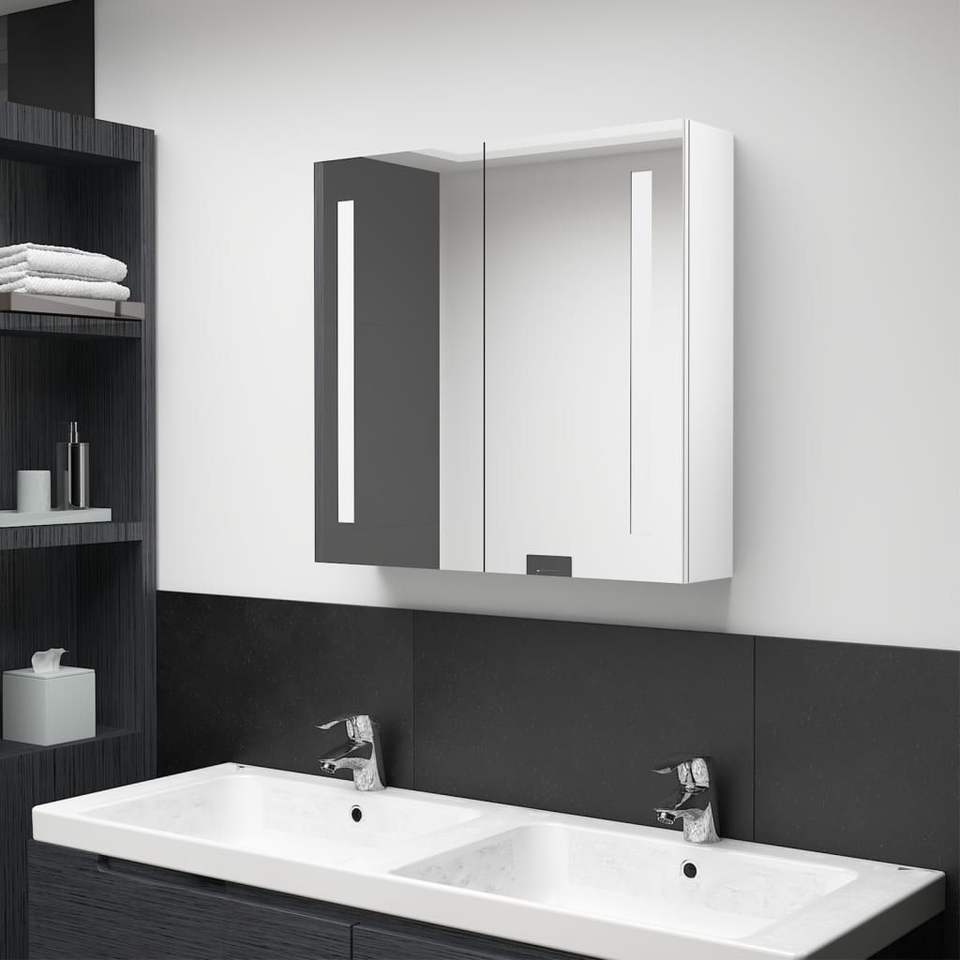 Shining White MDF Bathroom Cabinet with Melamine Finish and Glass Mirror Elegant Bath Mirrors