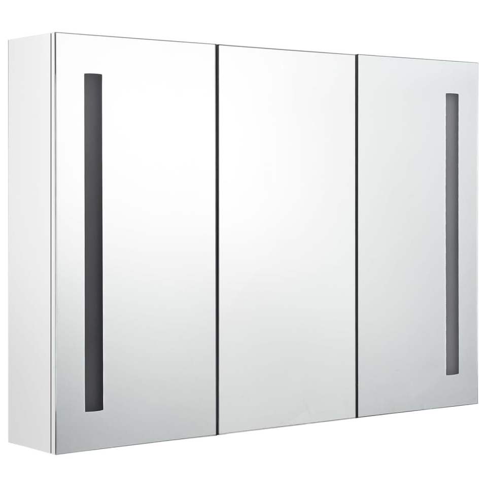 Shining White MDF Bathroom Cabinet with LED Mirror Glass and Melamine Finish