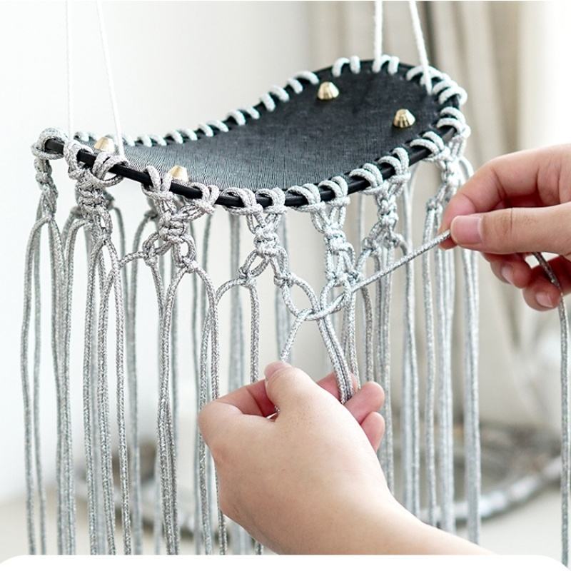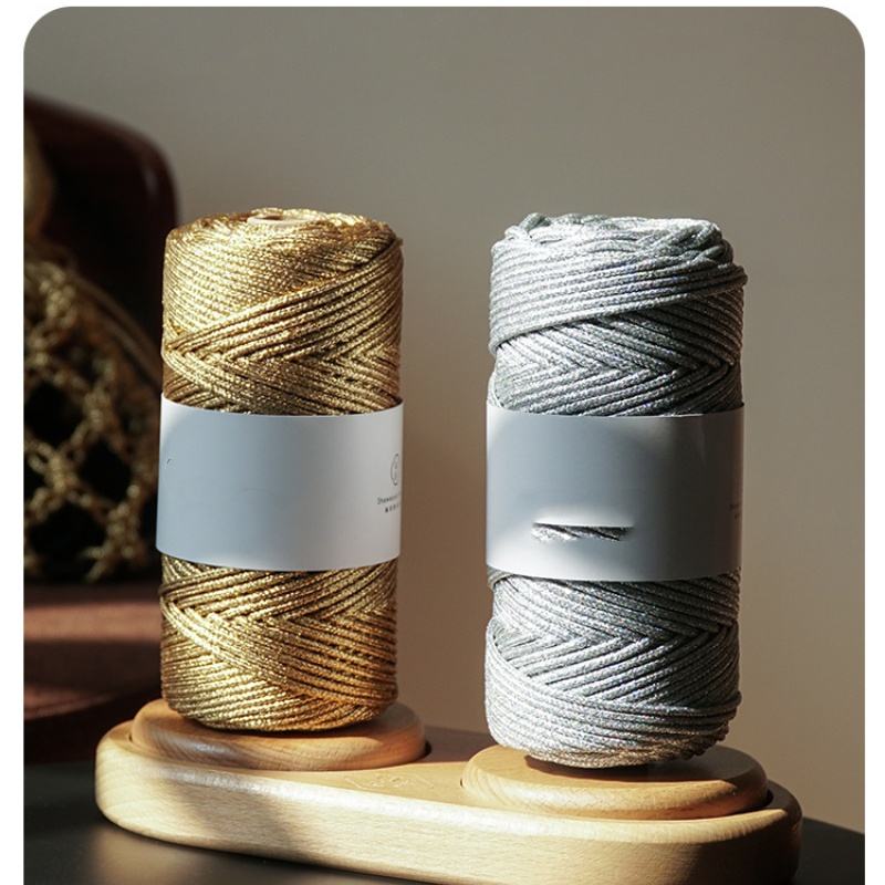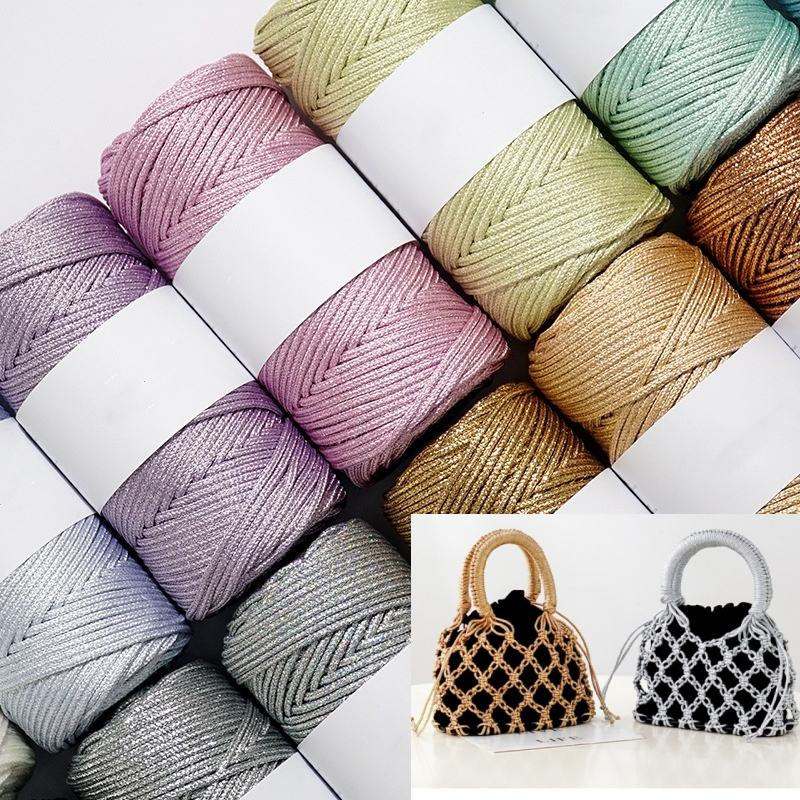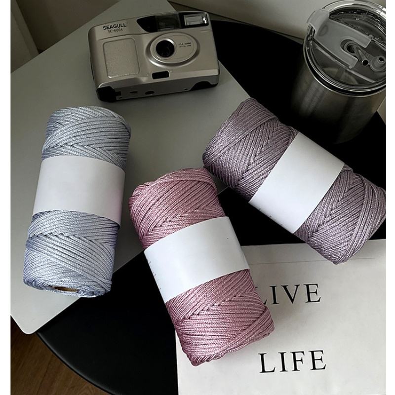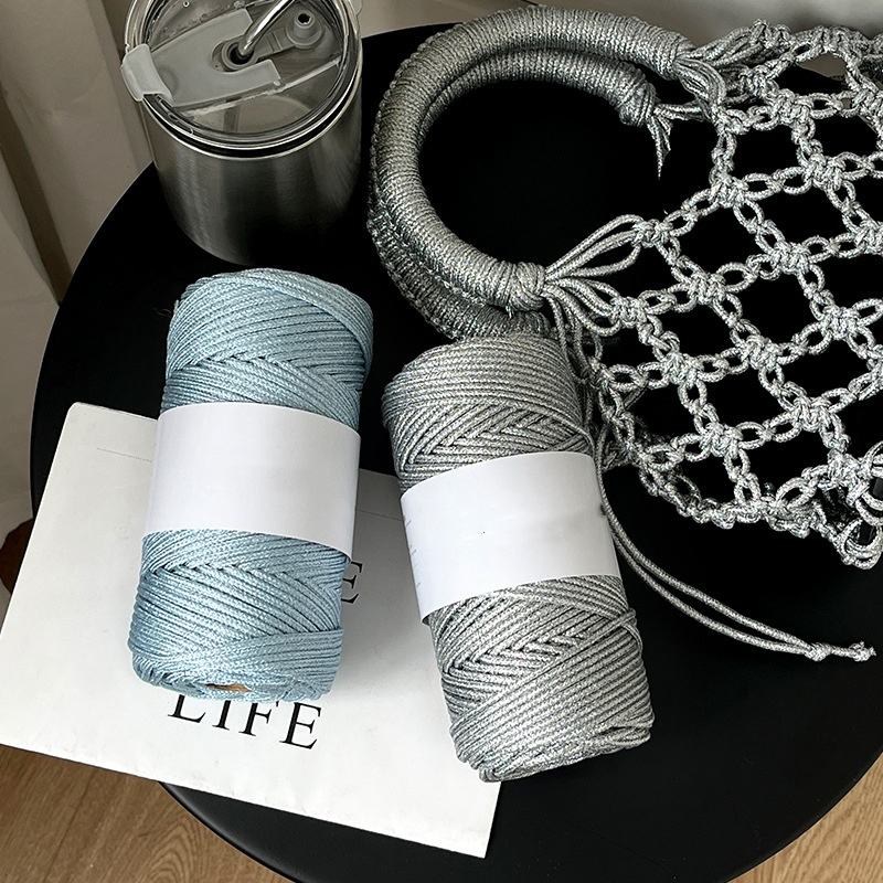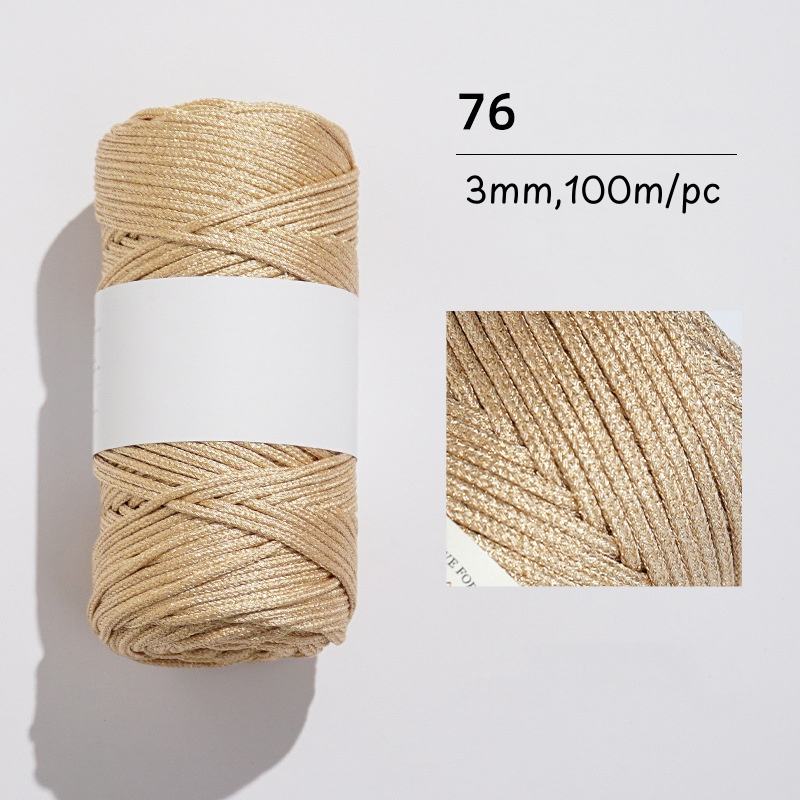 Corda Lucida con Anima Dorata da 3 mm per Fai da Te, Corda Intrecciata a Mano, Filato Macramè con Anima Argentata per Borse