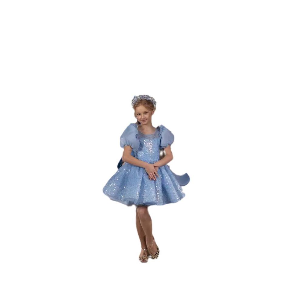 Shiny Blue Gown Baby Girl Dresses Princess Style Children Clothes Elegant Cloths for Kids Baby Girl Clothes Dresses for Girls