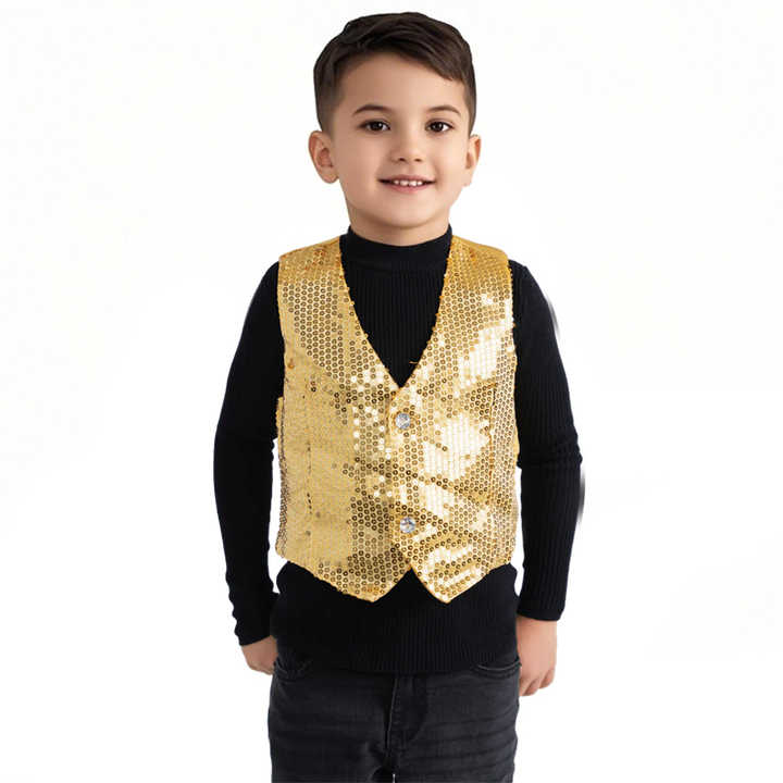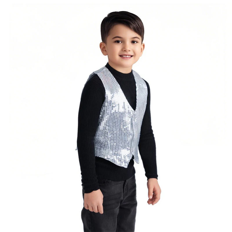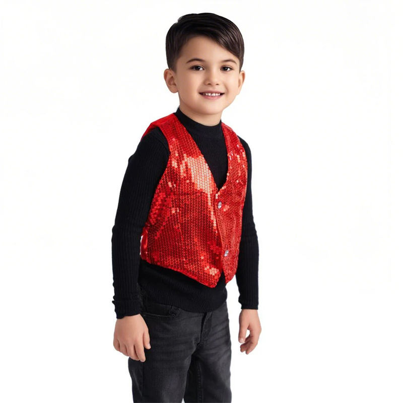 Shiny Sequined Waistcoat for Boys and Girls Kids Dance Party Jazz Hip-hop Stage Performance Wear for Concerts and Performances