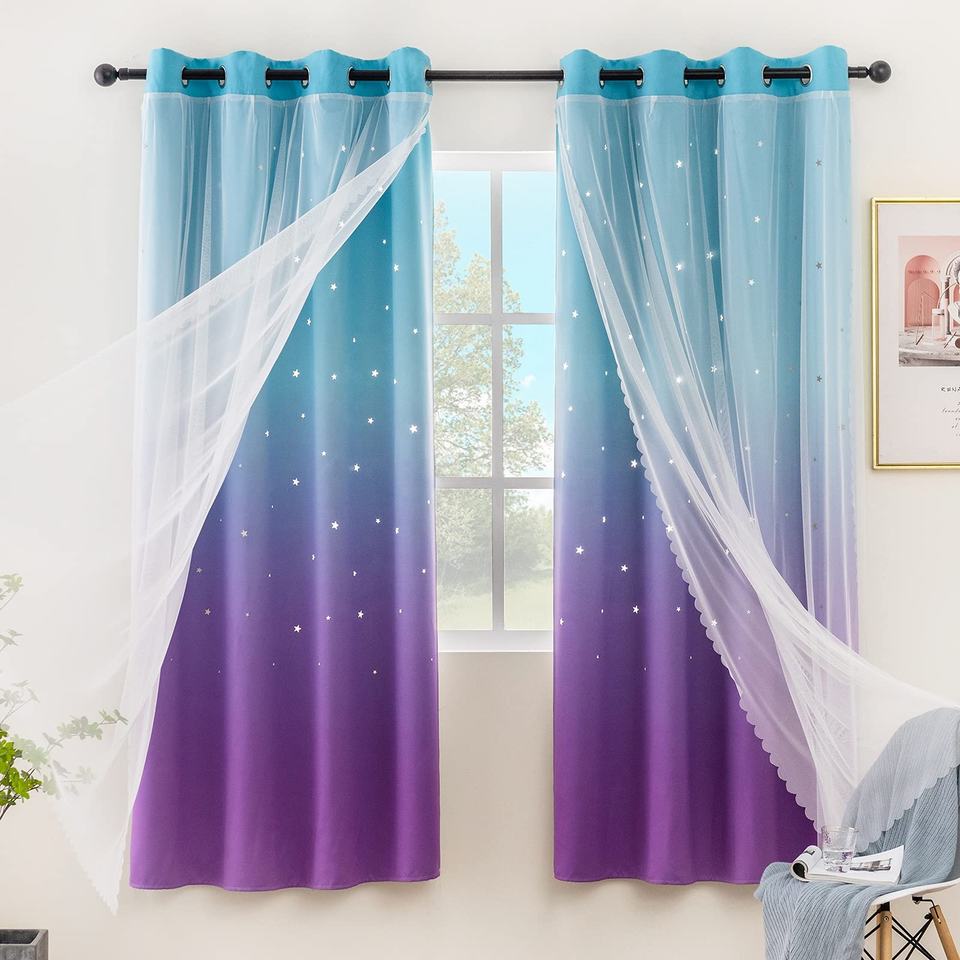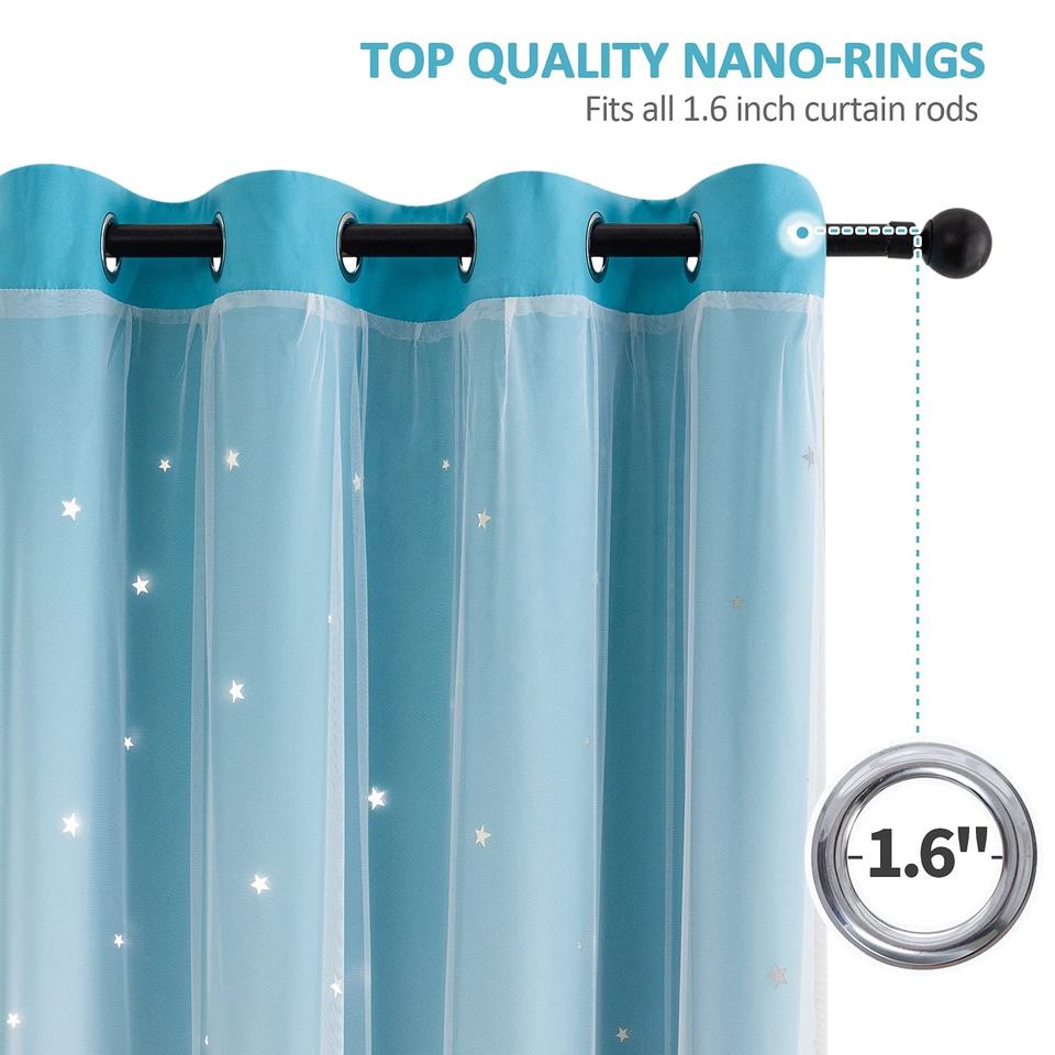 Tende intessute moderne 2-in-1 con stelle lucide tende oscuranti che bloccano le tende per camera dei bambini di colore nero