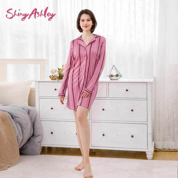 ShinyAshley Lounge Dress Print Sleepwear French Terry Womens Summer Pajamas VISCOSE Nightgown