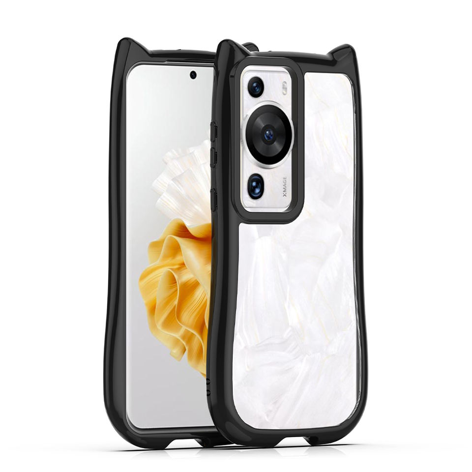 Shockproof Airbag Colorful TPU Frame Bumper Clear Acrylic Cat Ears Cell Phone Case for Huawei P60 Pro Art Back Cover