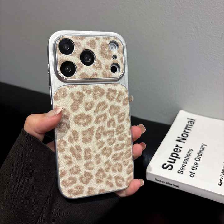 Custodia Antiurto Glitterata con Motivo Leopardato a Trasformazione Istantanea per iPhone 16 15 17 13/14, Stile Lusso con Finestra Grande