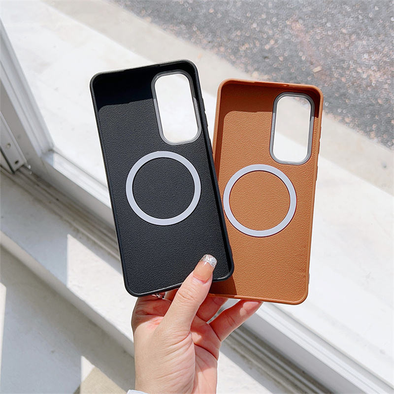 Custodia per telefono antiurto in pelle di lusso TPU con ricarica wireless magnetica per Samsung S25 S24 S23 S22 S21 Ultra, cover morbida