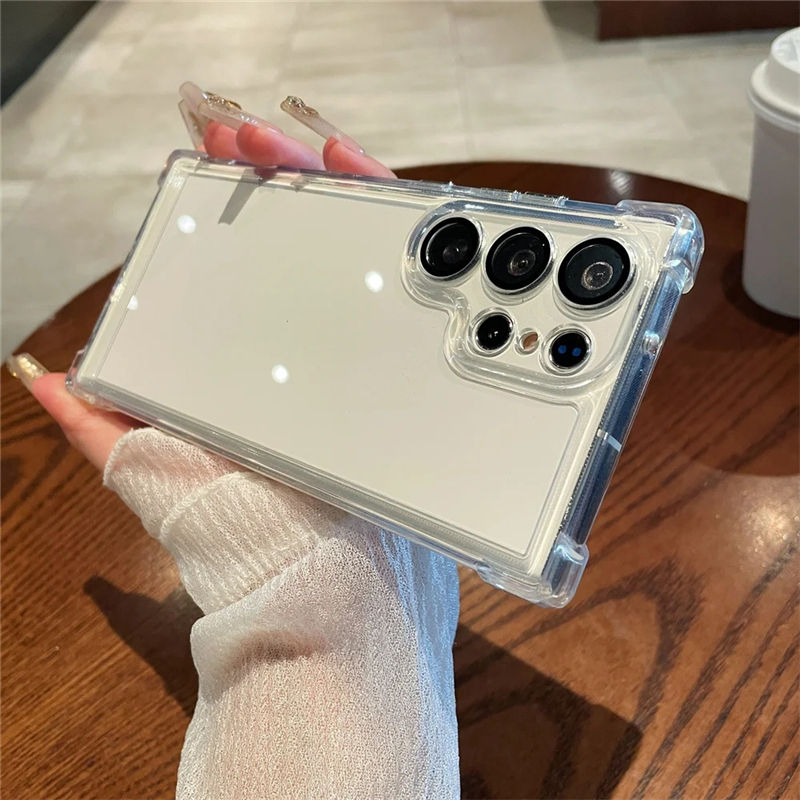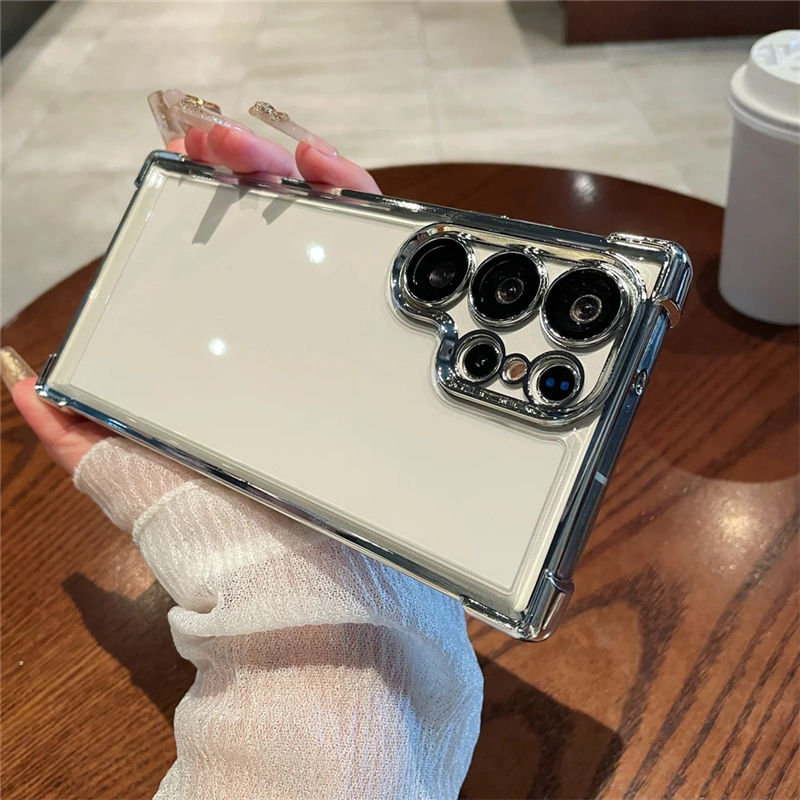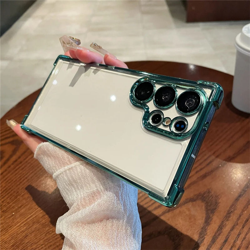 Custodia per telefono con rivestimento antiurto Airbag per Samsung S24 S23 FE S22 Ultra Plus note20 Cover trasparente per lenti in vetro trasparente