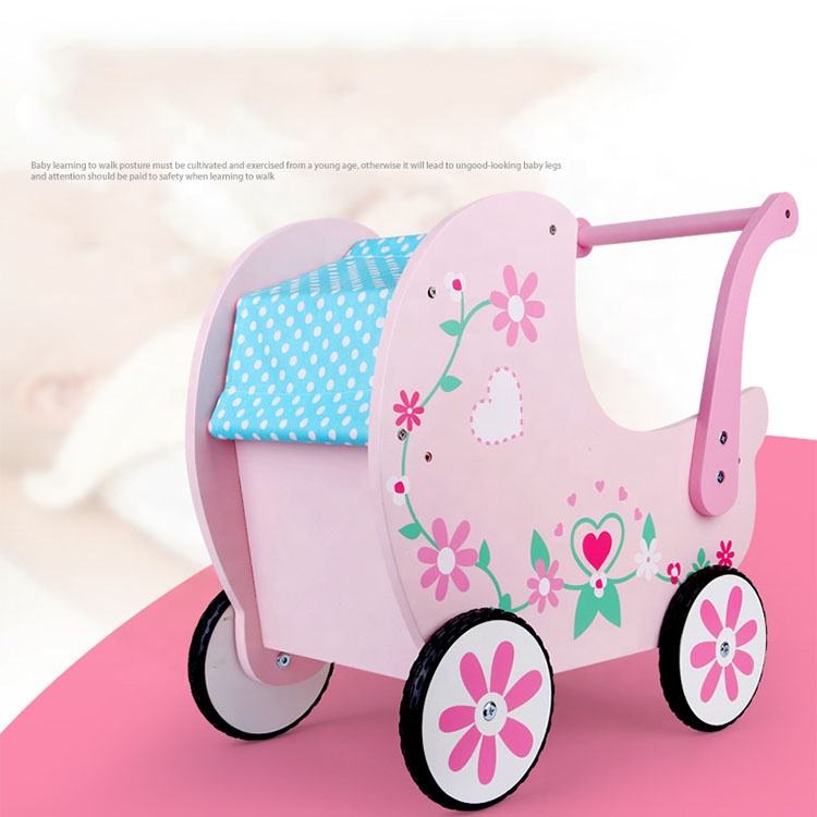 Carrello della Spesa Educativi Del Bambino Passeggino Apprendimento Precoce Rosa Giocattolo Del Bambino Di Legno Walker