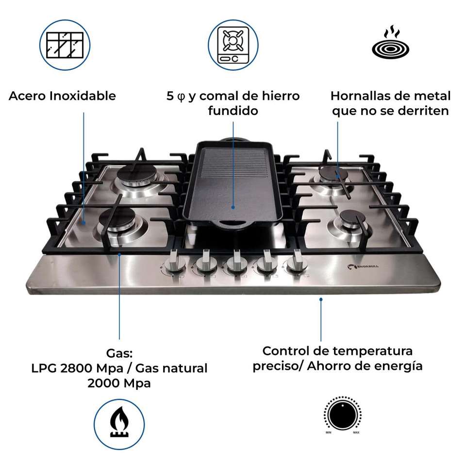Shorbull 5 Burner Stainless Steel Gas Stove with Griddle Durable Construction High Performance OEM Wholesale Bulk Supply