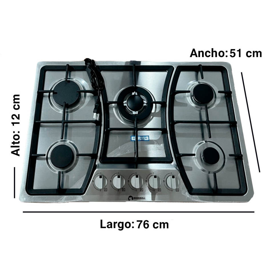 Shorbull Stainless Steel 5 Burner Gas Stove Durable Design and High Performance