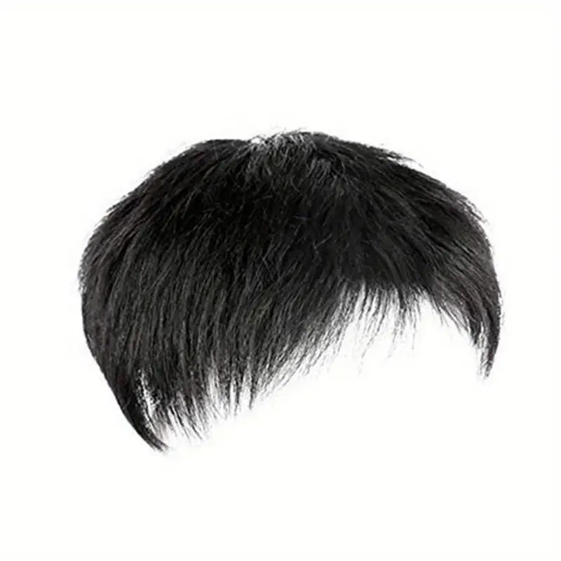 Parrucca Corta Traspirante per Uomo, Morbida e Naturale, Nera, in Capelli Sintetici, Toupet con Clip per Uso Quotidiano