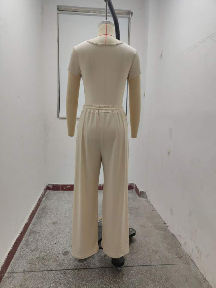 T-shirt a maniche corte a costine costume intero perizoma con pantaloni larghi 2 pz set abbigliamento yoga tuta Pilates