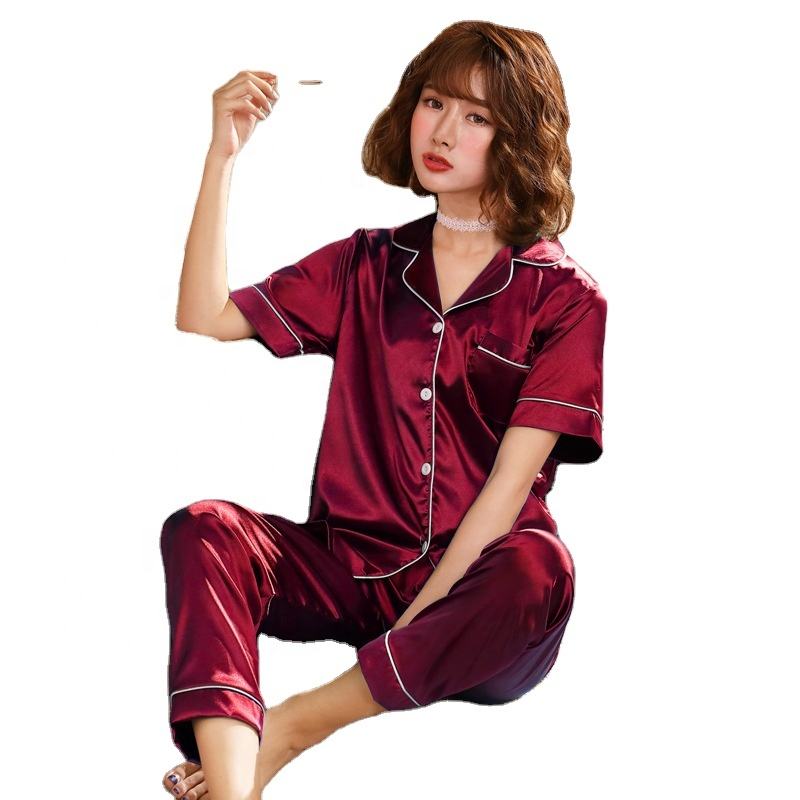 Set Pigiama in Raso a Maniche Corte Primavera Estate Donna Pigiama in Seta Ghiaccio Abbigliamento da Notte Taglie Forti fino a 5XL