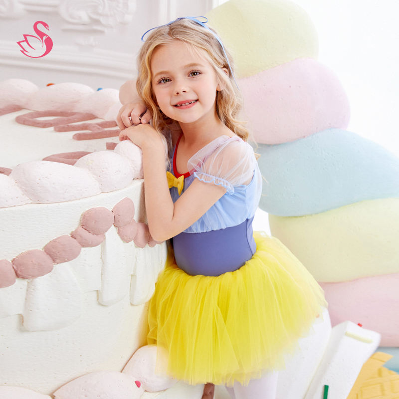 Short-Sleeved Snow White Puffy Vessel Dress for Girls Performance Wear Printed Children's Kindergarten Clothes