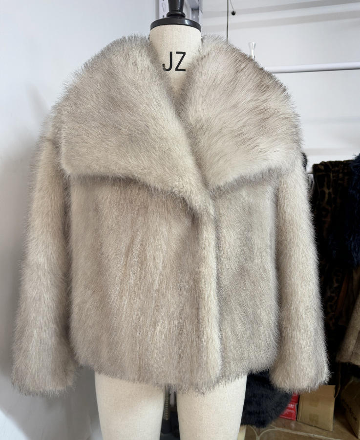 Giacche da ragazza con collo a girocollo in pelliccia corta cappotto da donna