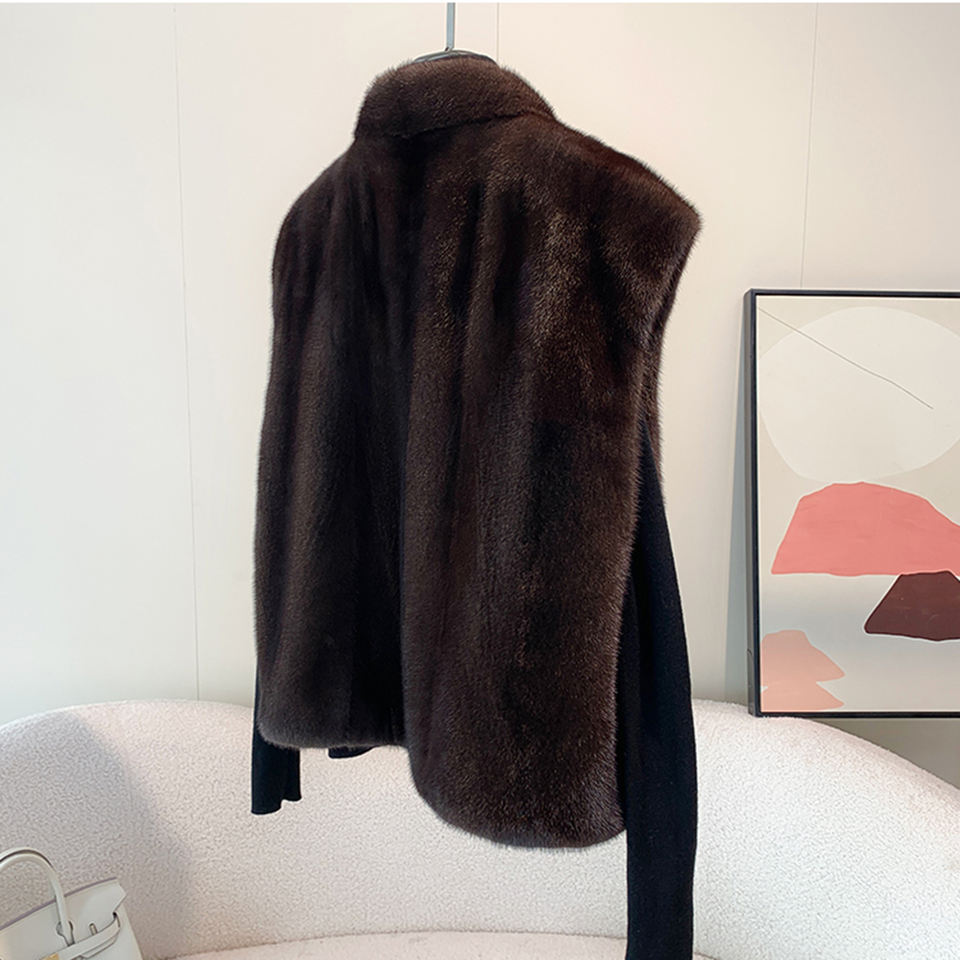 Gilet Corto di Lusso in Vera Pelliccia di Visone d'Allevamento Ecosostenibile con Scollo a V per Donna, Stile Casual, Colore Marrone Naturale