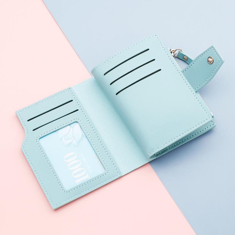 Portafoglio da donna corto con chiusura a zip: contiene carte, contanti e una foto. Personalizzabile con il tuo logo.