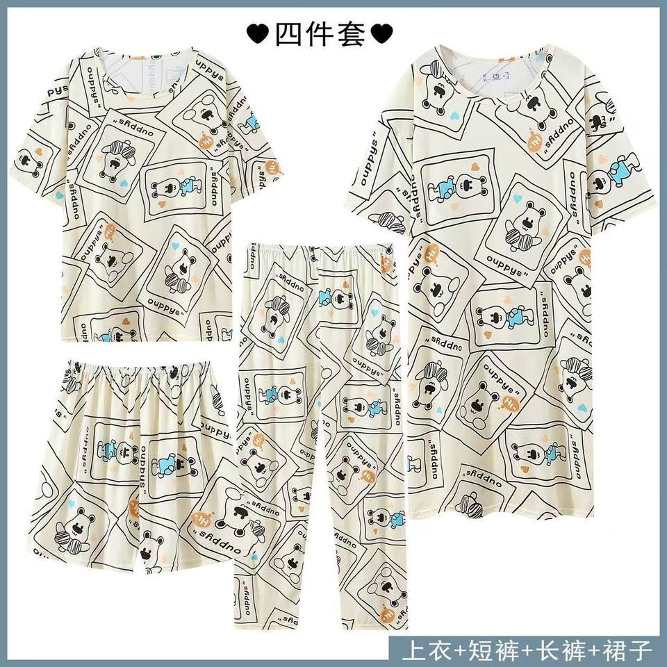 Short-sleeve Long Pants Shorts Skirt 4-piece Set Women's Pajamas Cute Cartoon Design Mickey Casual Large Size Home Clothing Set