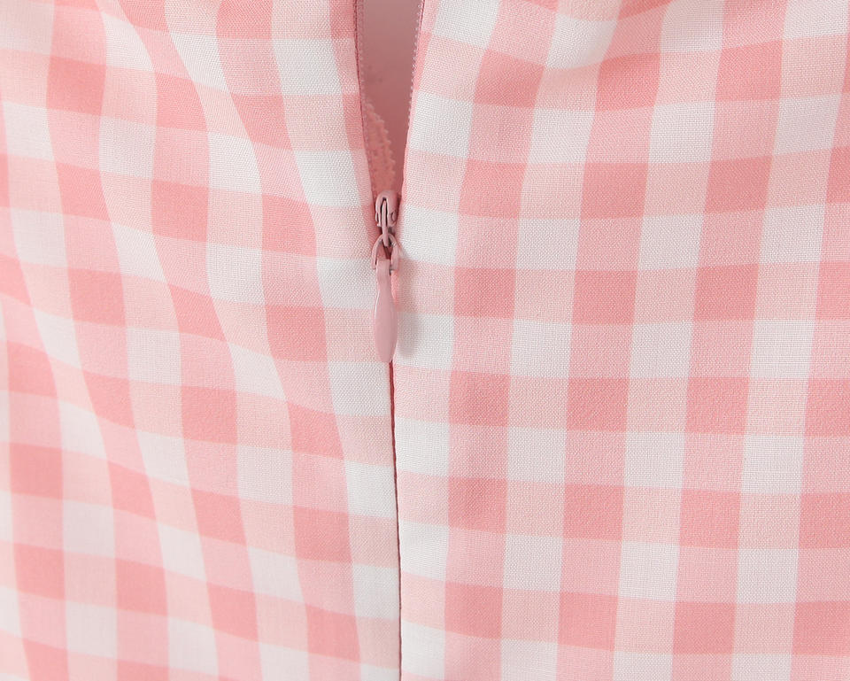 Mini Abito Slip Casual alla Moda con Spalline, Stampa a Quadri Rosa e Chiusura con Cerniera per Signore
