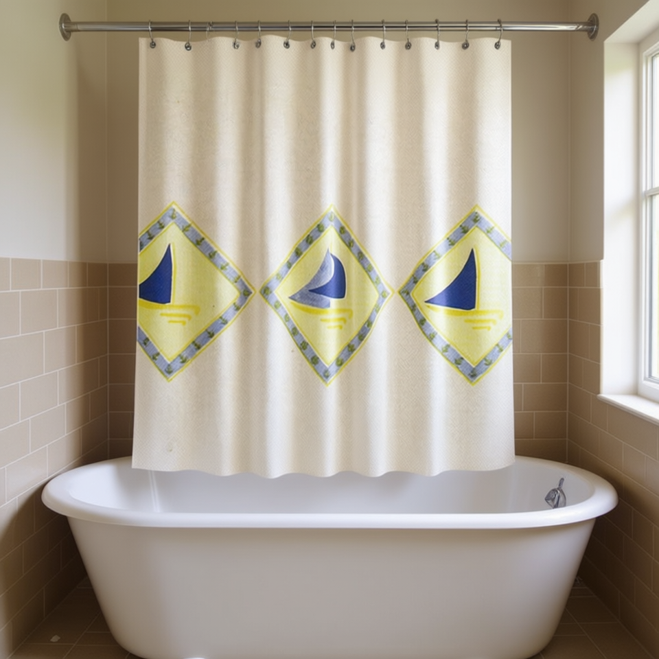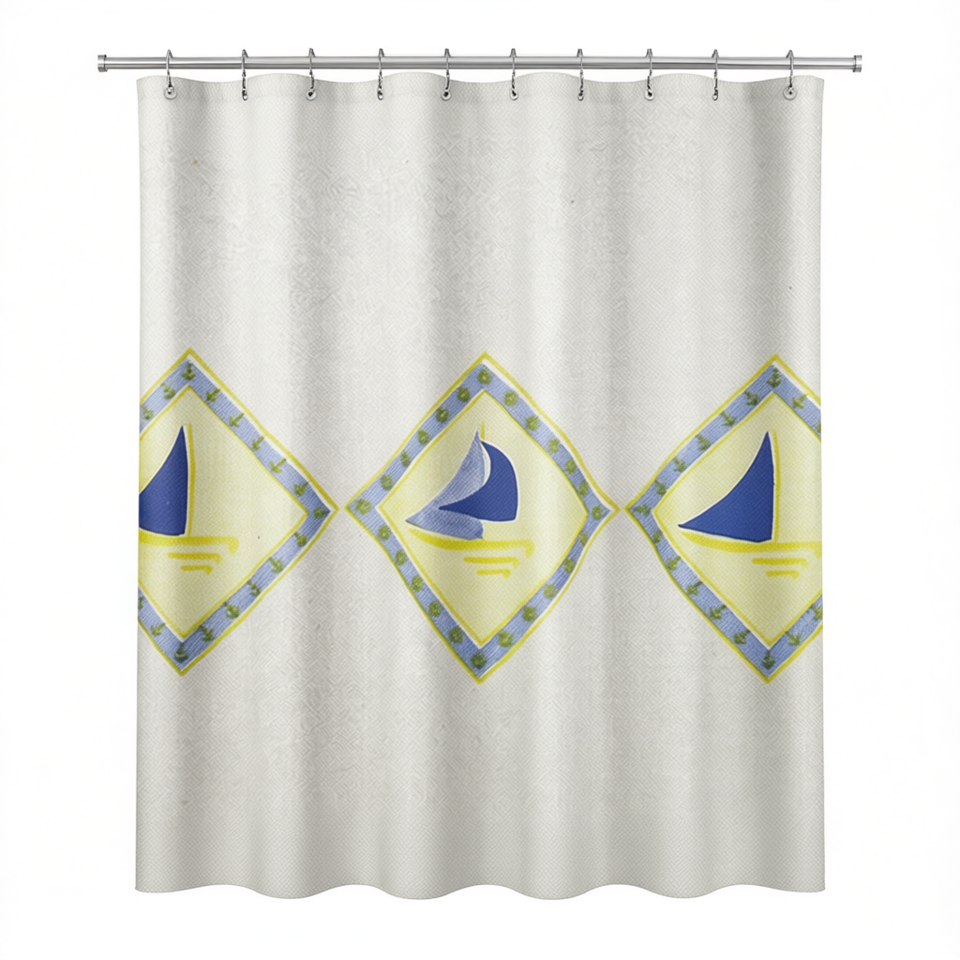 Tenda Doccia 240 X 200 Cm Design Barca a Vela Orizzonte per Bagno
