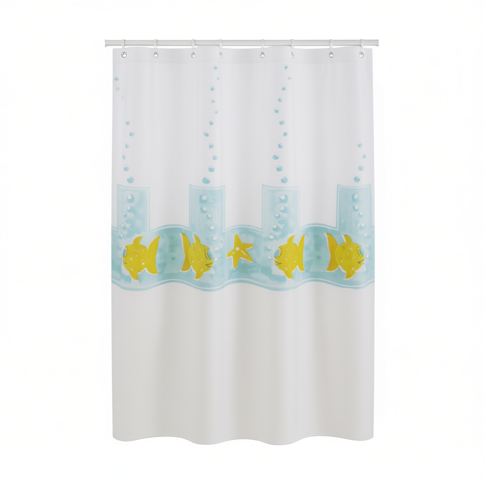 Tenda da doccia 240 x 200 cm a 3 lati con disegno di pesci e stelle marine per uso in bagno