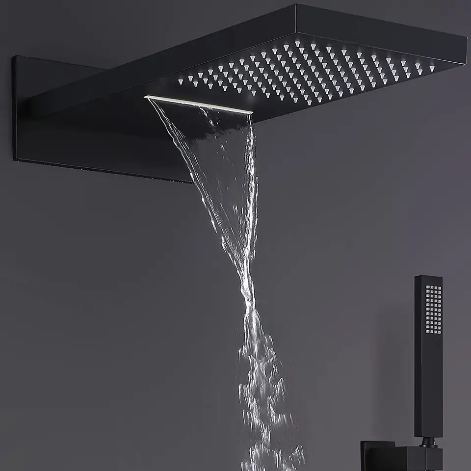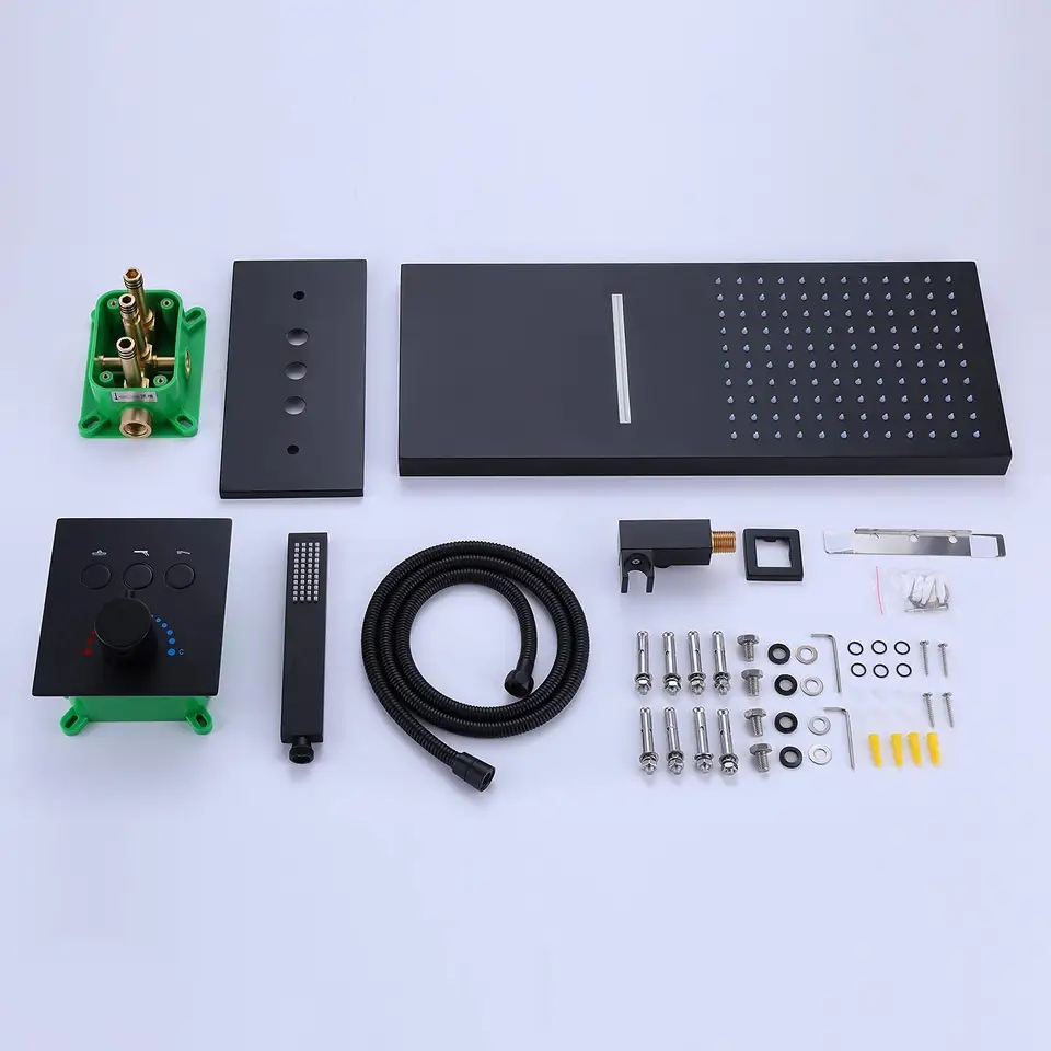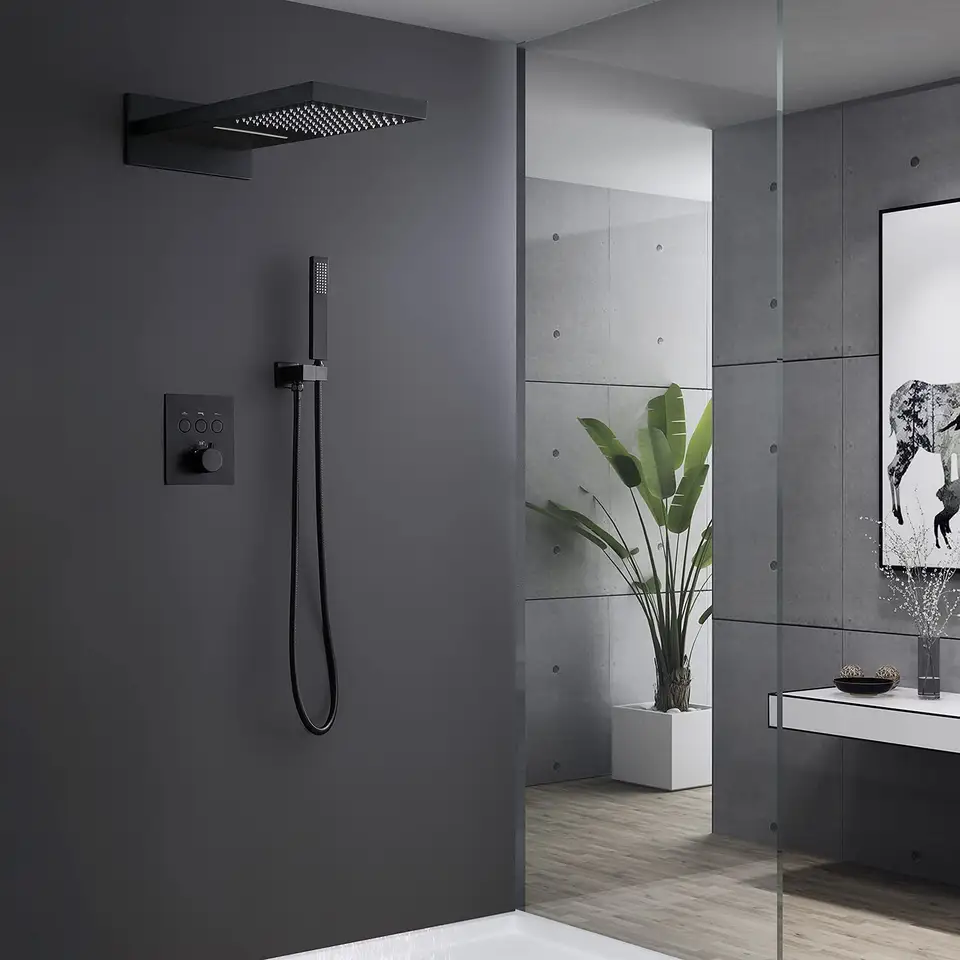 Rubinetto doccia Set completo valvola termostatica a 3 vie con pannello doccia portatile a spruzzo superiore rame nero pioggia nascosta