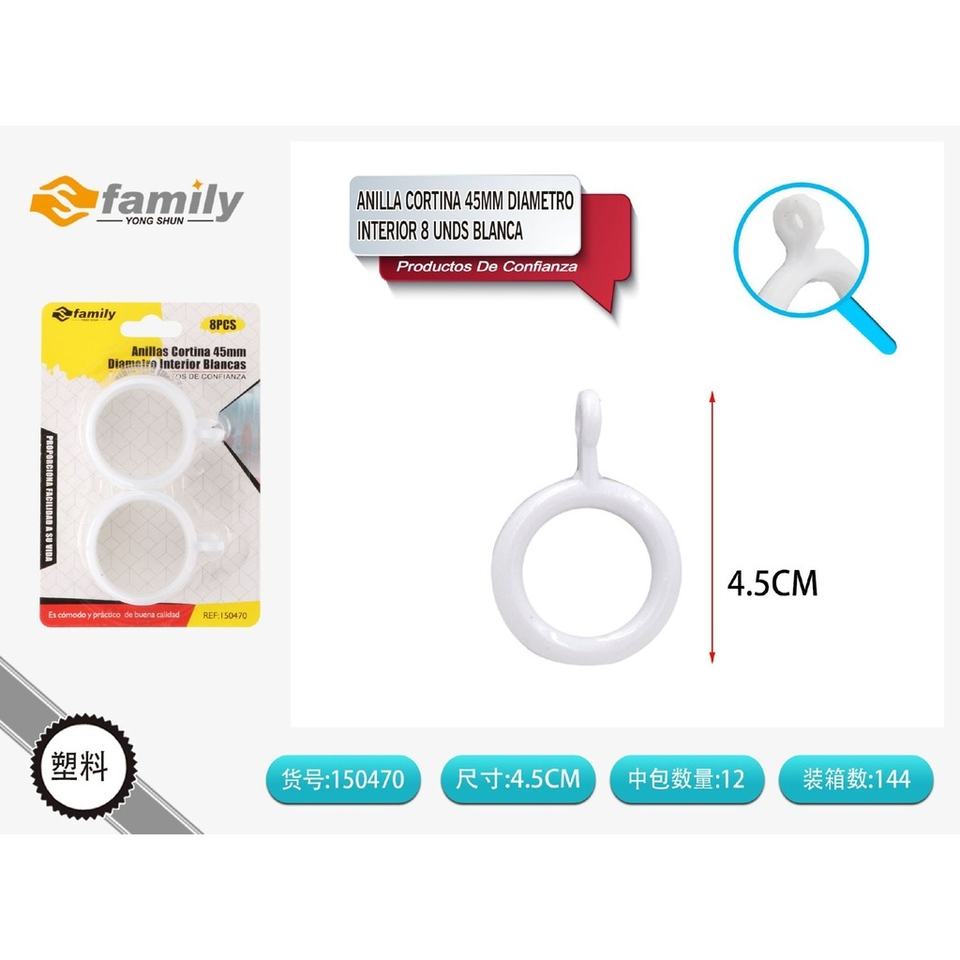 Shower curtain rings, 45 mm inner diameter, 8 units, white