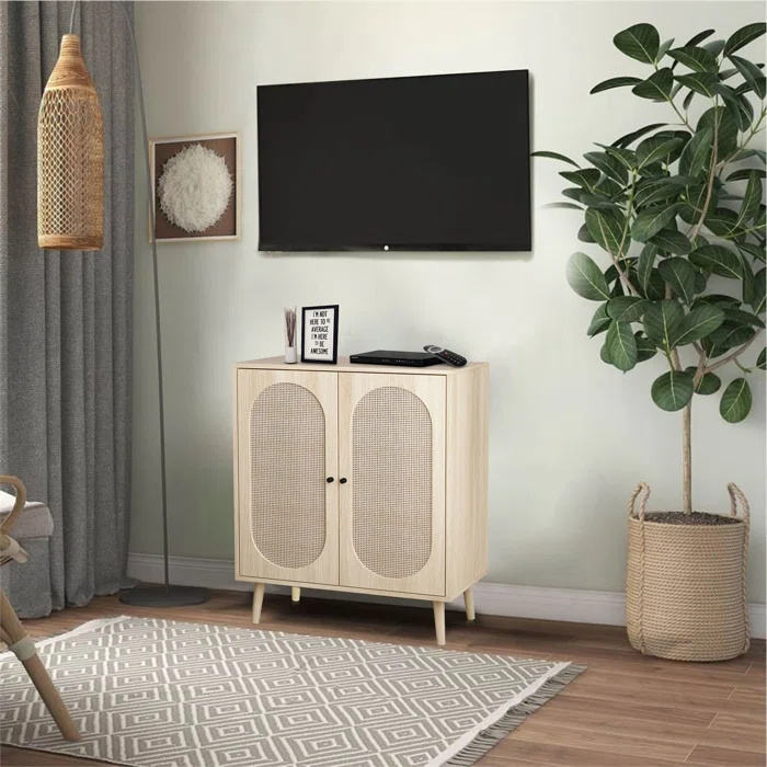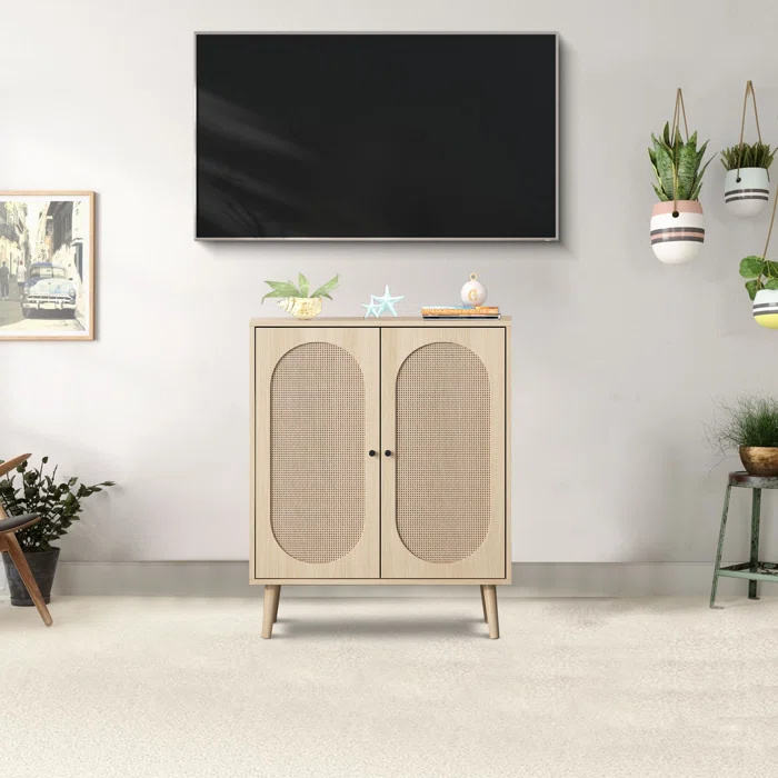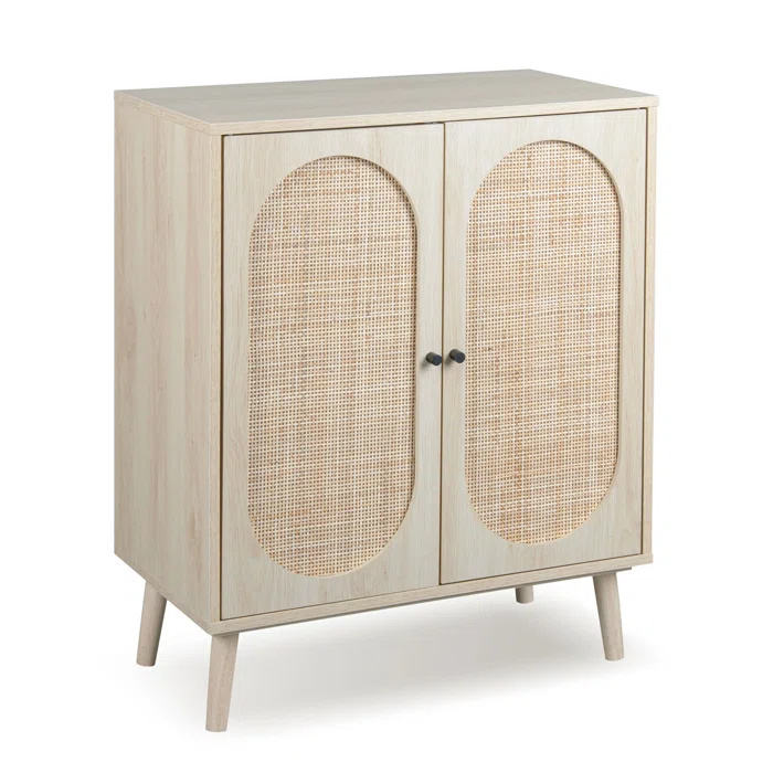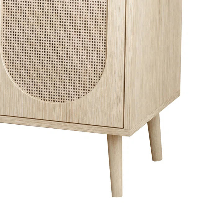Armadi a buffet con pannello laterale, armadietti alti per la cucina con porte in rovere in rattan e ripiani regolabili, arredi per la casa