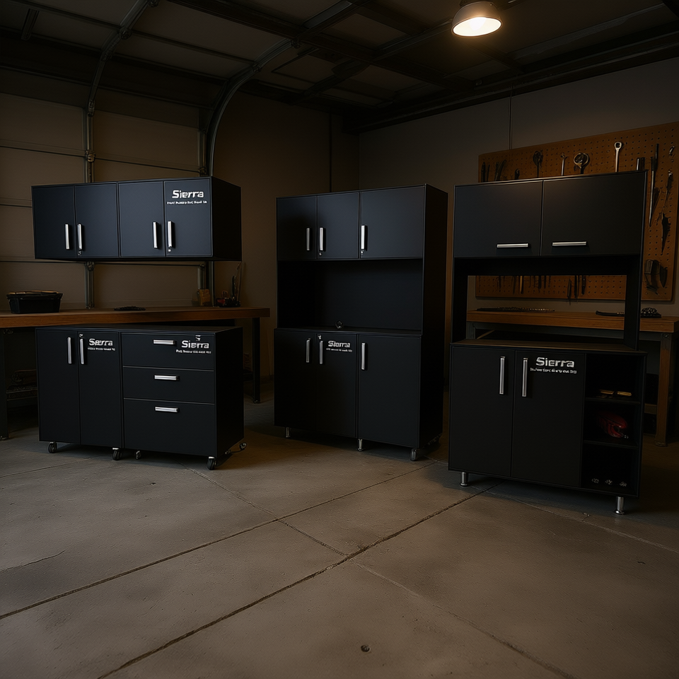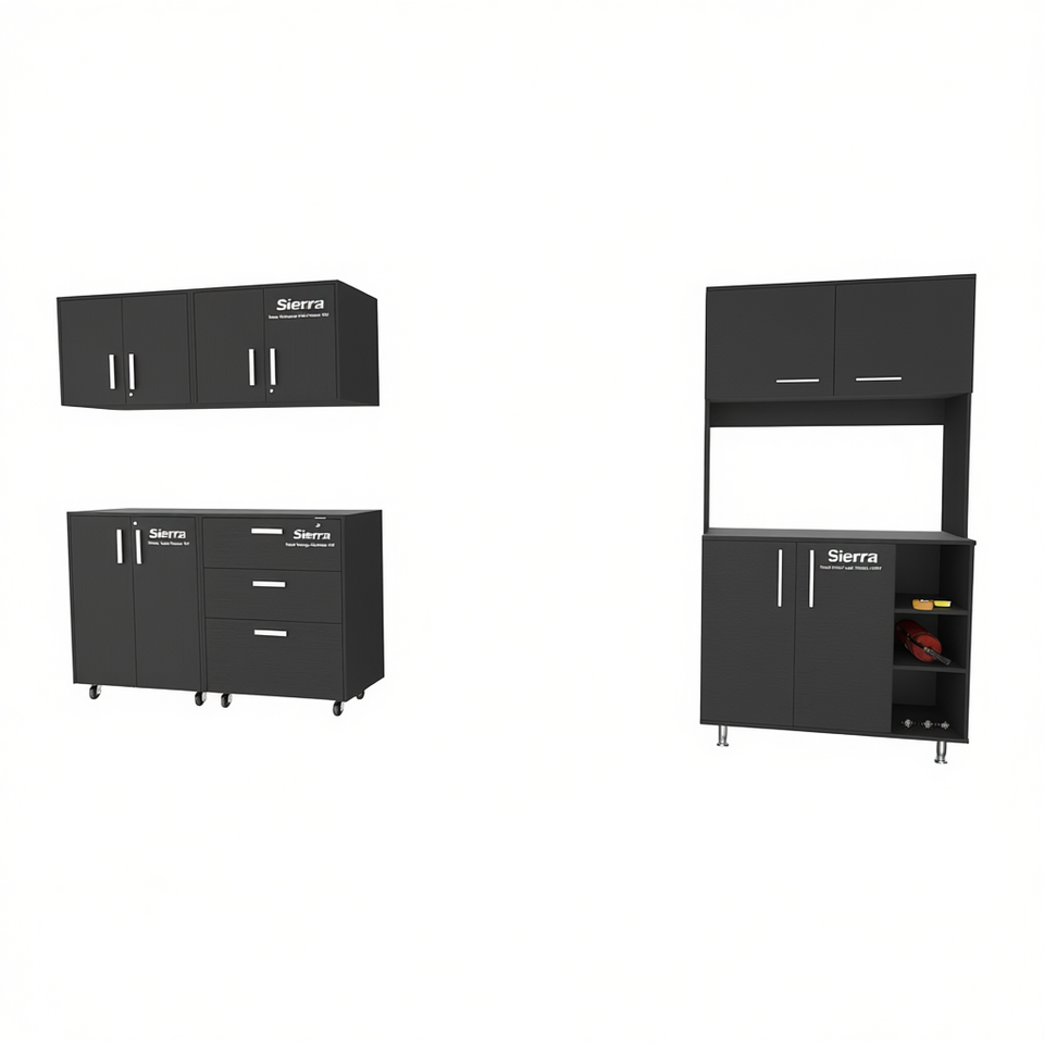 Set di Armadietti Portautensili Sierra da 5 Pezzi, Stile Industriale Nero con Cassetti e Sistema di Chiusura