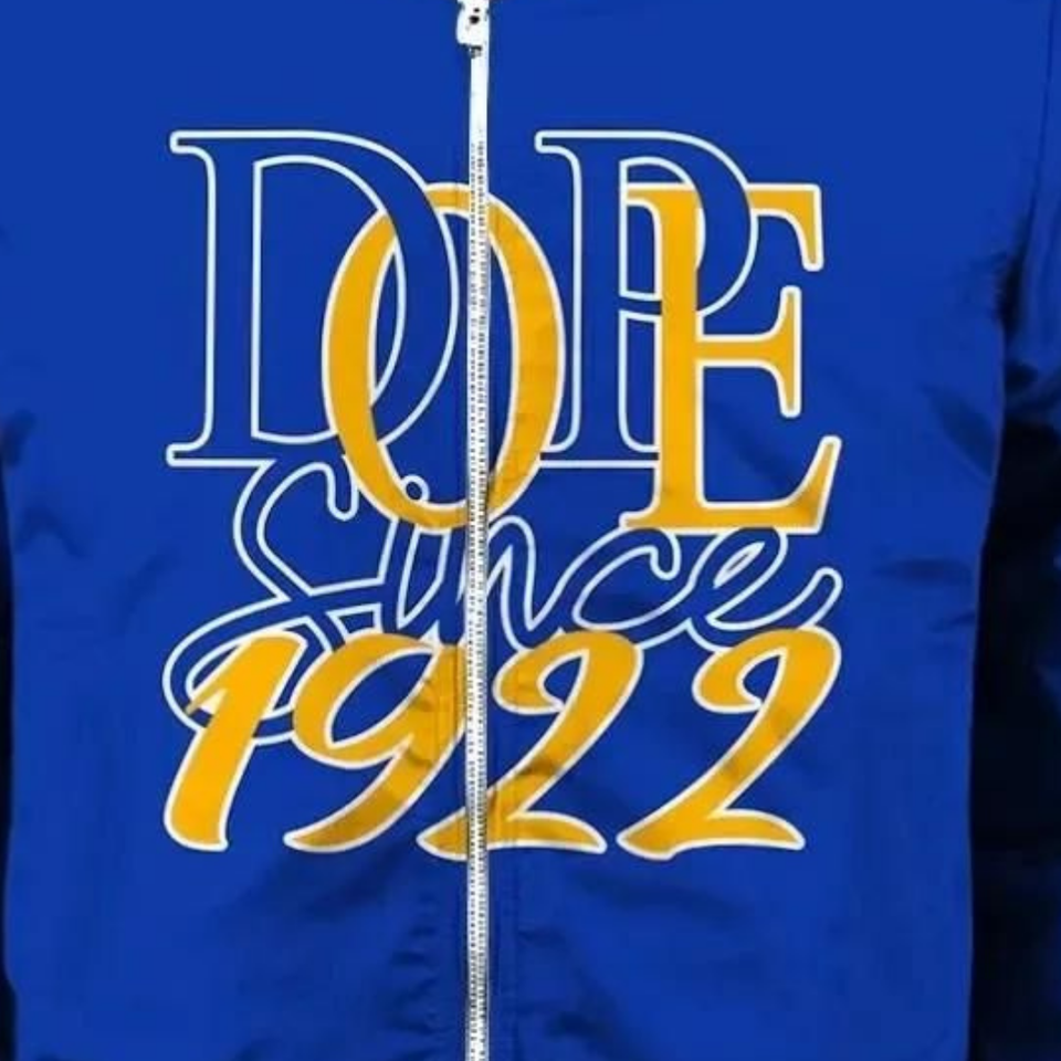 Giacca Varsity in Raso Blu Reale e Oro Sigma Gamma Rho SGRho 1922, Abbigliamento Femminile per Confraternite