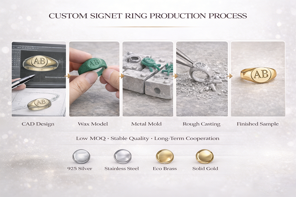 Signet Ring OEM ODM Manufacturer for Jewelry Brands 925 Silver Stainless Steel Relief Casting Custom Production