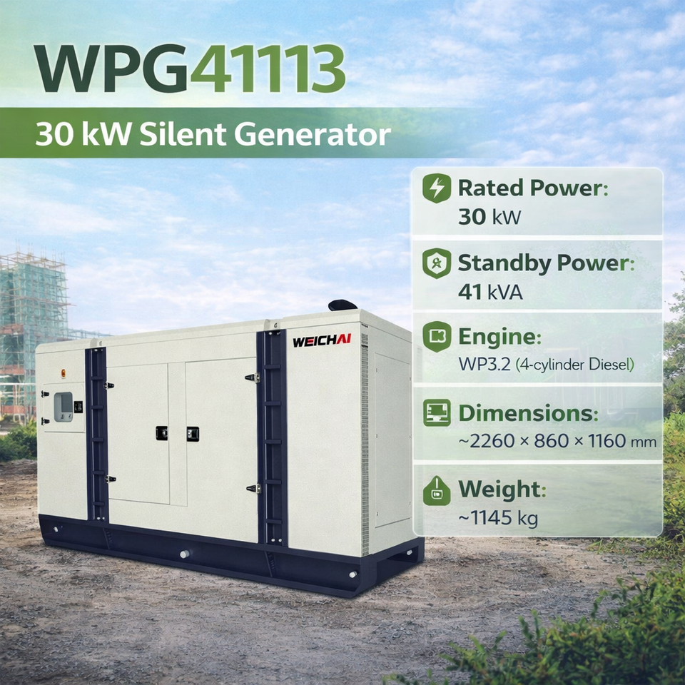 Generatore Diesel Silenzioso WPG41L13 30kW (Prime) 41kVA (Standby) per Alimentazione di Emergenza in Fabbriche, Magazzini, Uffici e Ospedali