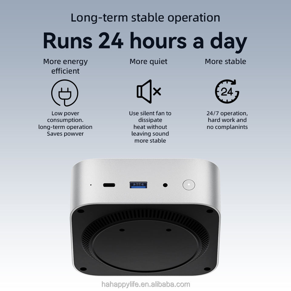 Mini-computer industriale silenzioso a basso consumo con RAM DDR5 da 32 GB, processore Ryzen 7 8745HS, mini PC per sistema operativo Windows 11 Pro.