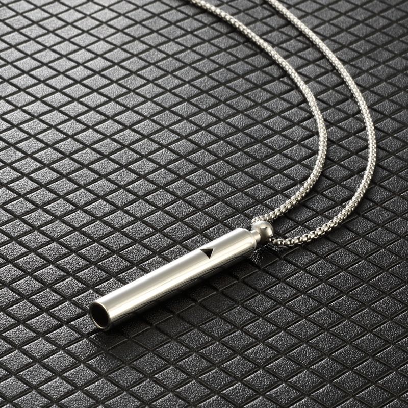 Silent Sound YiLove 18K Gold Plated Stainless Steel Pendant Necklace Link Chain Hollow Triangle Whistle Trendy Unisex Fashion