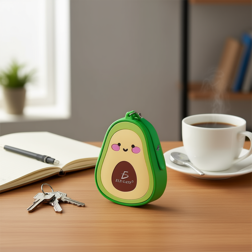 Portafoglio in Silicone a Forma di Avocado con Chiusura a Cerniera, Design Frutta Cartoon, Portafoglio Corto Unisex di ELEGATE, Prodotto in Messico, Modello HOG.69.N