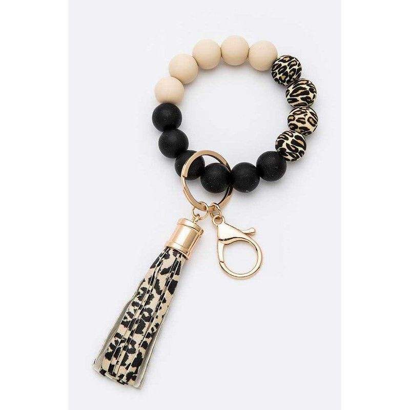 Braccialetto con Nappine in Perline di Vetro e Cristallo Stampato in Silicone, Portachiavi