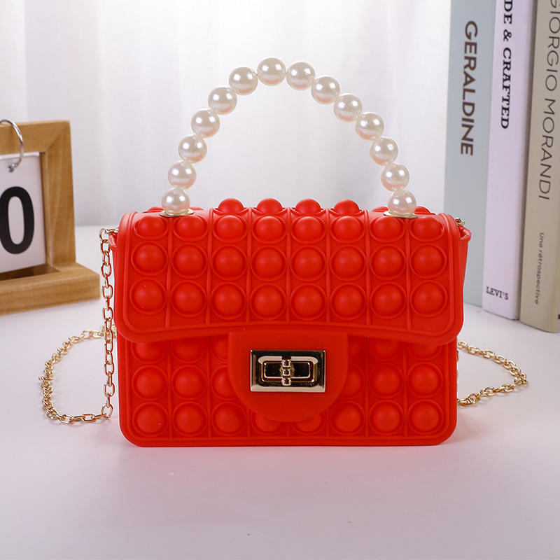Silicone Love Bubble Jelly Bag Popper Pressure Relieving Purse Pop It Handbag With Faux Pearl Handle Cute Chain Crossbody Bag