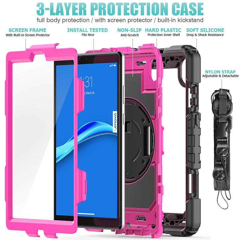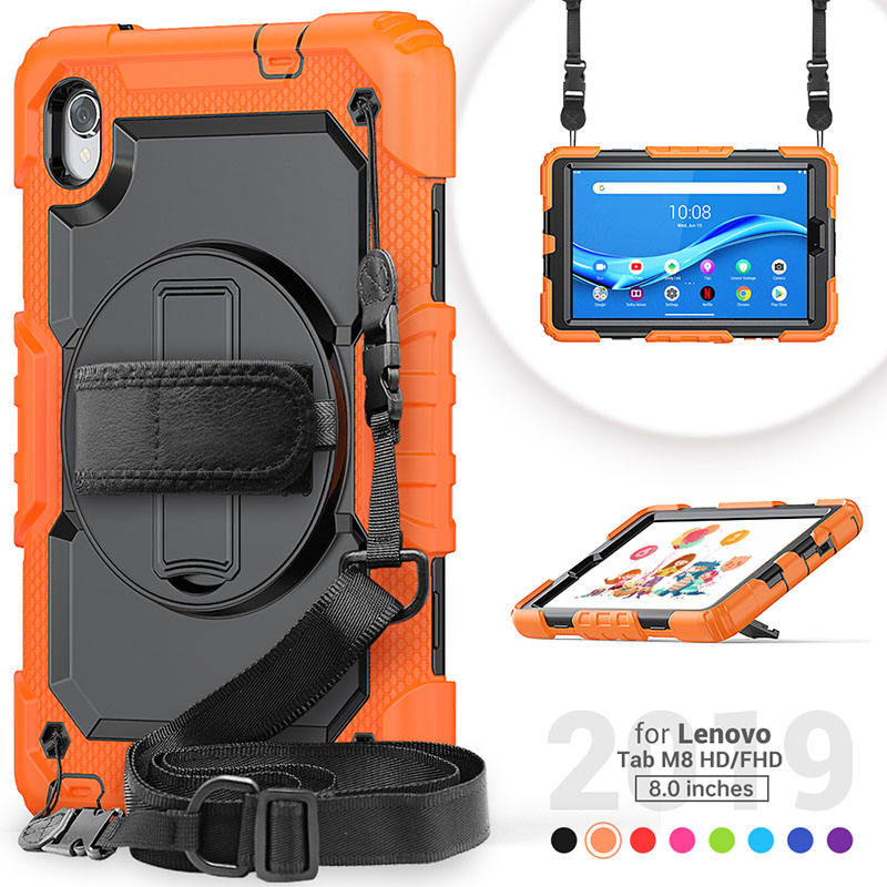 Silicone Tablet Cover for Lenovo Tab M8 HD /FHD 8.0 TB-8505X TB-8705X with Hands Strap Shoulder Strap and Rotatable Stand