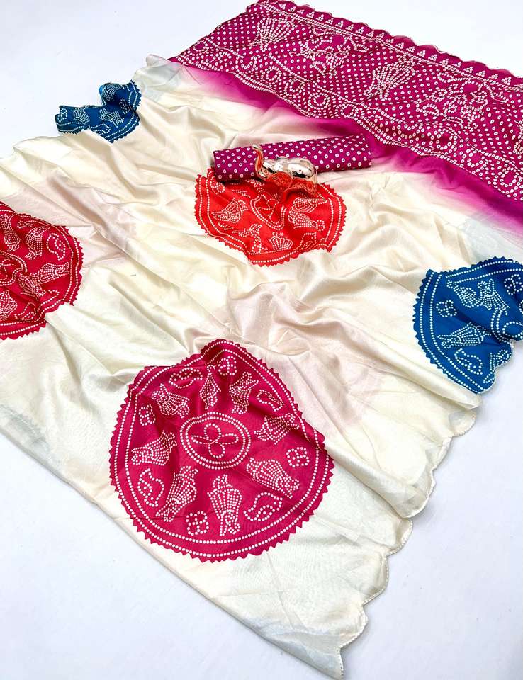 Silk Bandhani Dolla Saree with Both-Side Cut Work Border and Heavy Design for Women