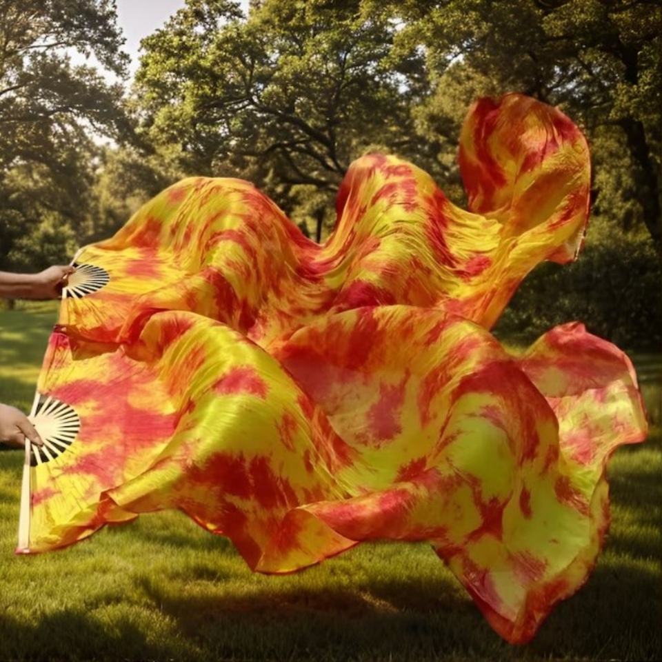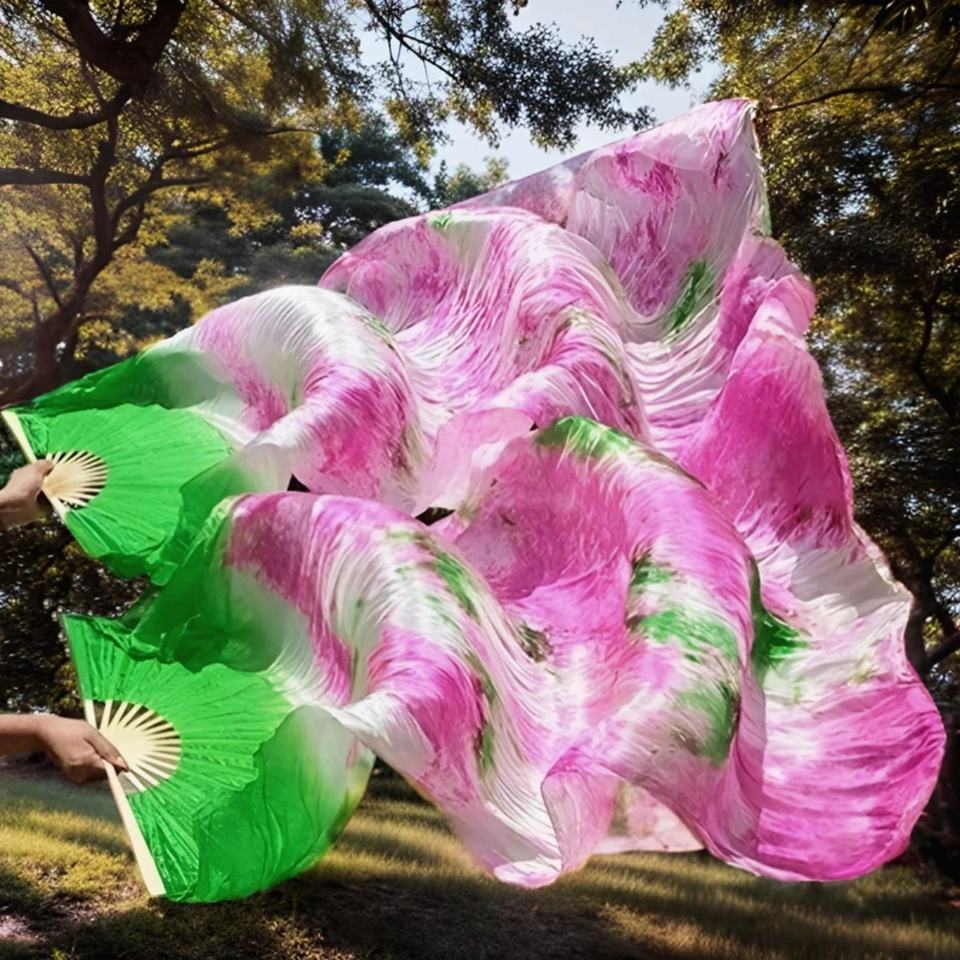 Silk Fan Veils Belly Dance Colorful Tie-Dyed Silk Fans for Worship Dancing Show Arts