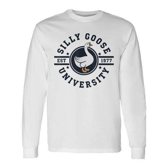 T-shirt a maniche lunghe Silly Goose University con design vintage Meme, taglia unisex per adulti