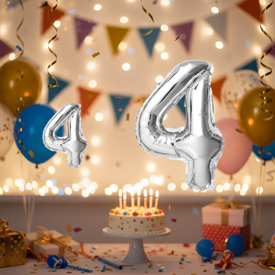 Modello di palloncino Mylar numero 4 da 40 pollici in argento Peiyong 52422 per feste e celebrazioni