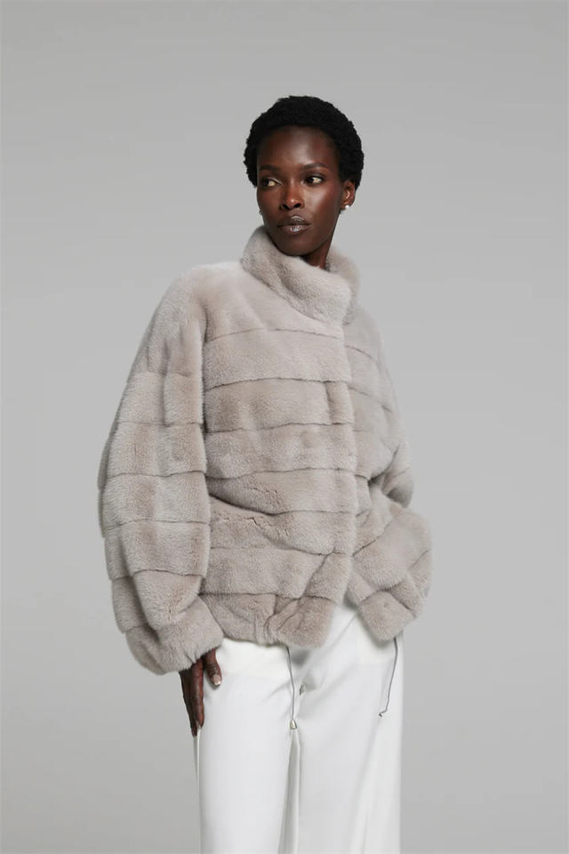 Silver Blue Mink Fur Coat Women's Premium Mink Coat Solid Gray Color Jacket Thickened Regular Length Insulated Outerwear